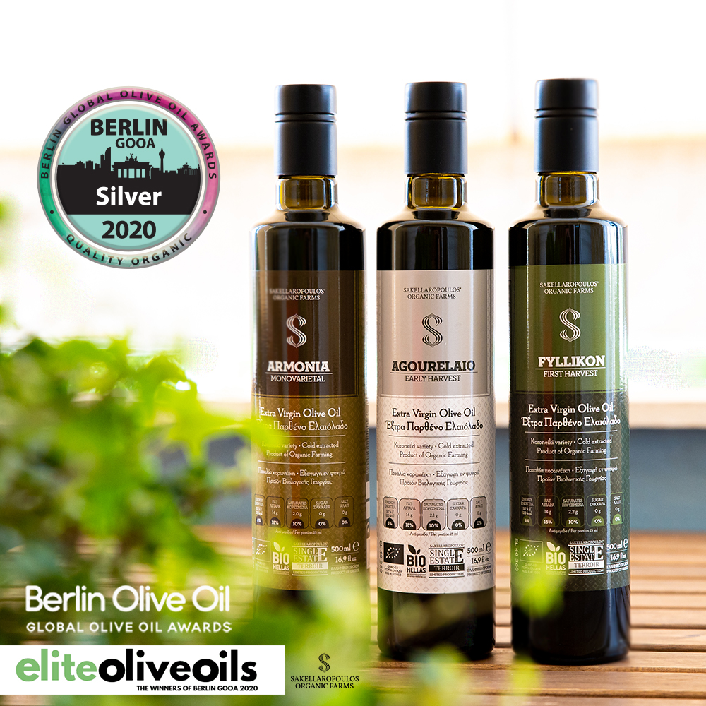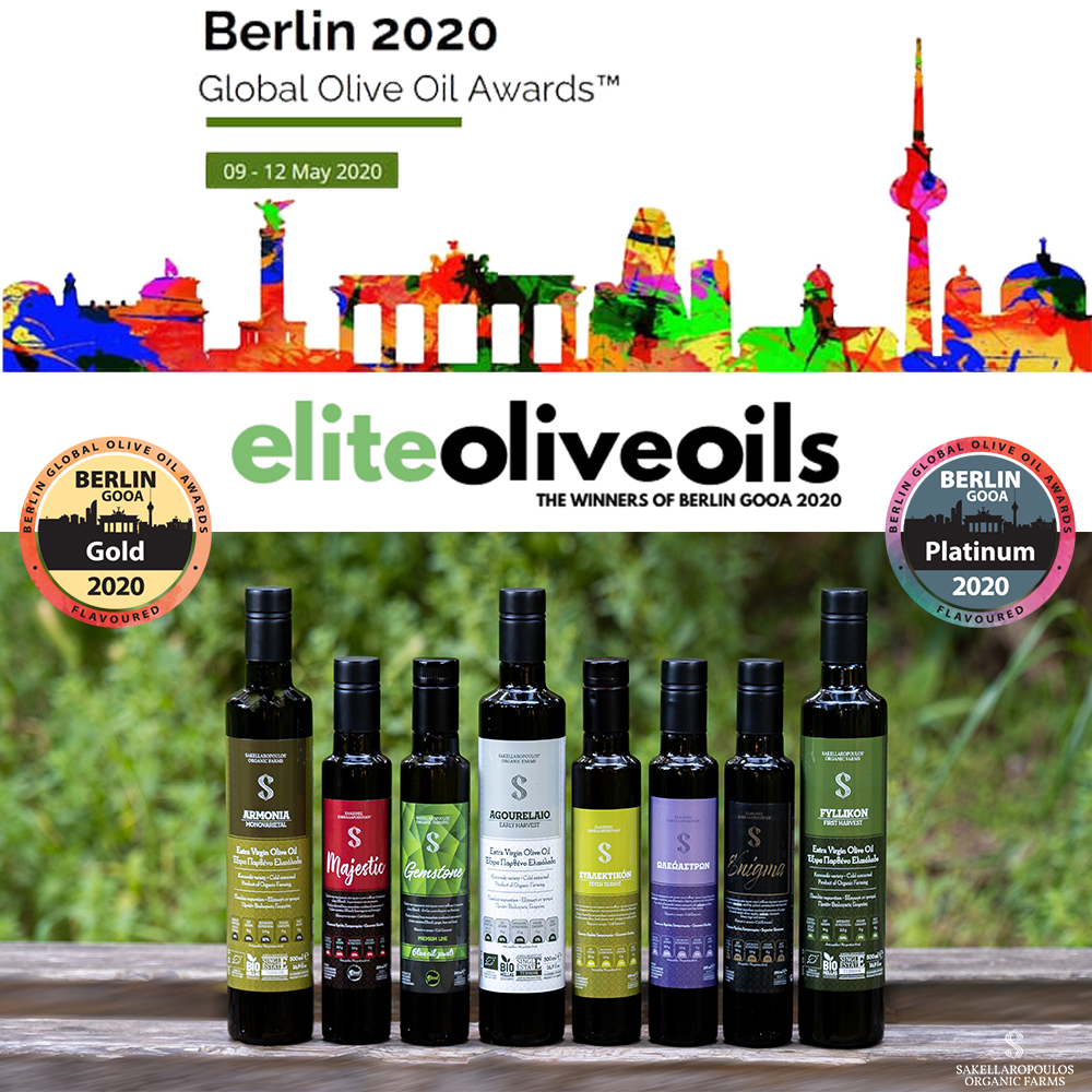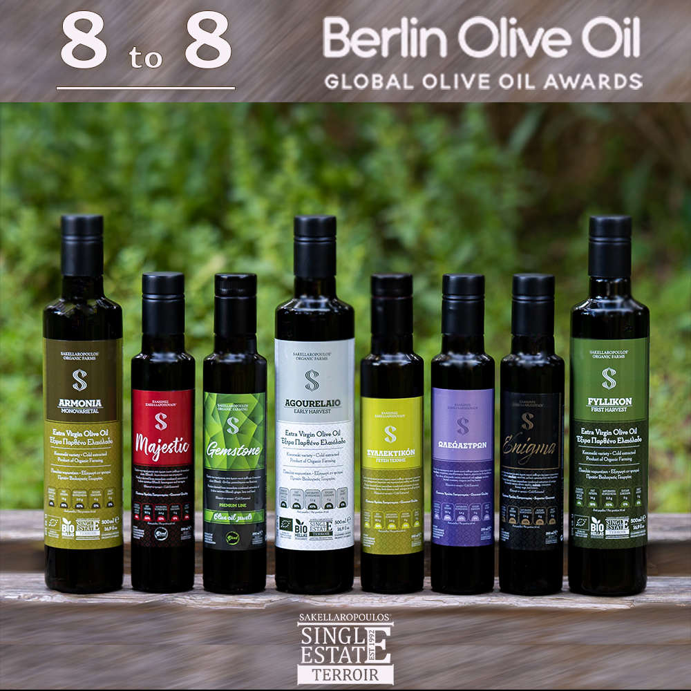 Sakellaropoulos Organic Farms managed to receive 8 international awards, with 8 participating olive oil samples, at the Berlin Global Olive Oil Awards 2020 that took place at Berlin, Germany, between May 9 and 12.