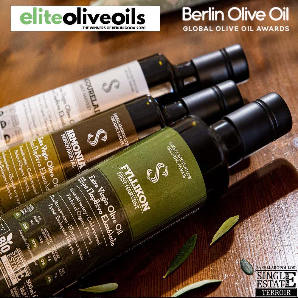 These 8 major awards at the Berlin Global Olive Oil Awards 2020 constitute the 144th international award for Sakellaropoulos organic farms, a unique record for a Greek single-estate producer of organic olives and olive oil.