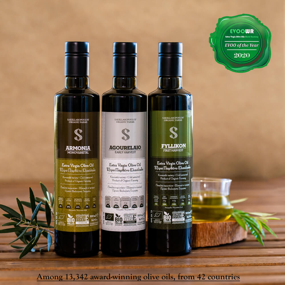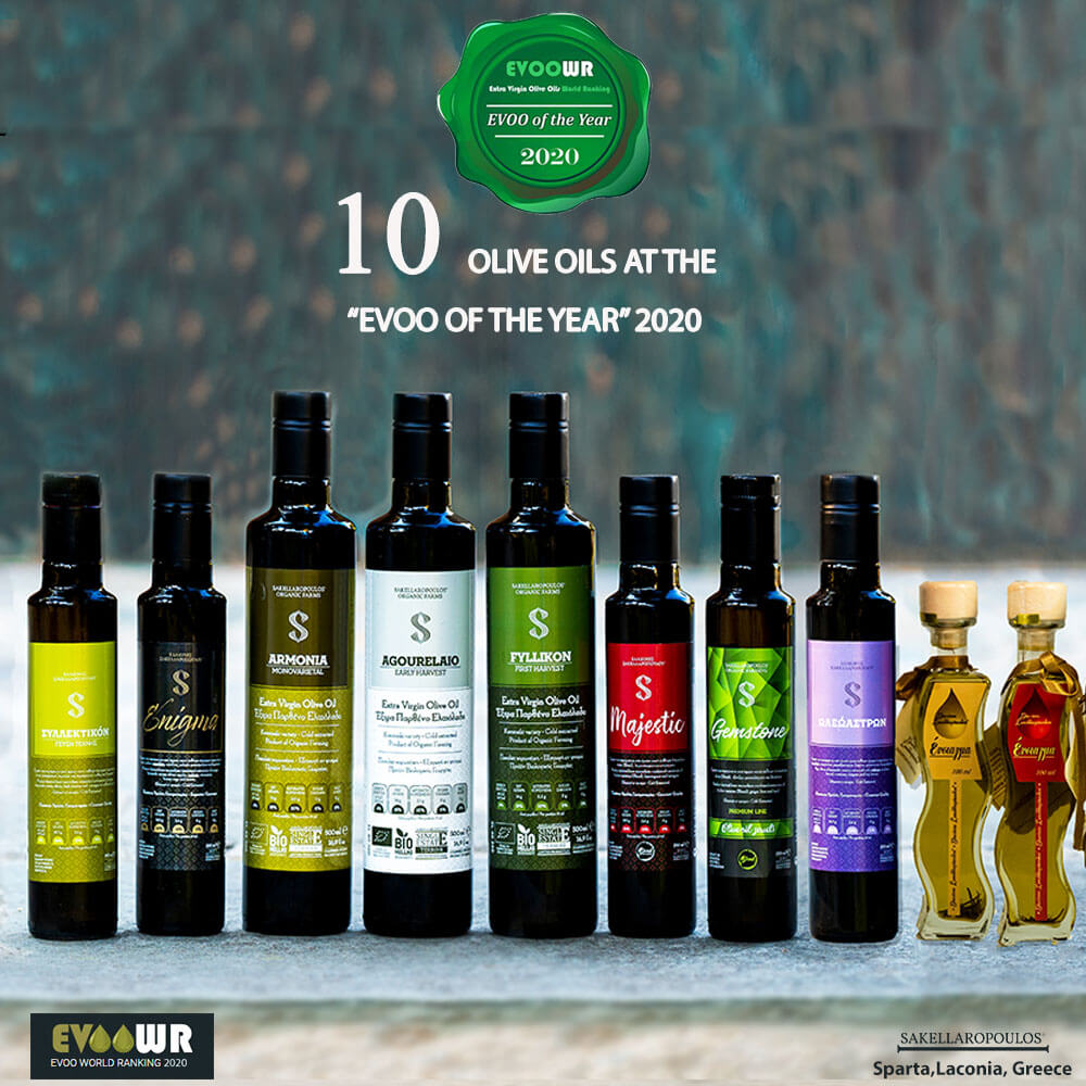• 10 organic and gourmet olive oils from Sakellaropoulos organic farms are officially ranked in the "Olive Oils of the Year 2020" (Evoo of the Year 2020), among 13,342 award-winning olive oils, from 42 countries, belonging to 3% of the awarded olive oils. These olive oils are: