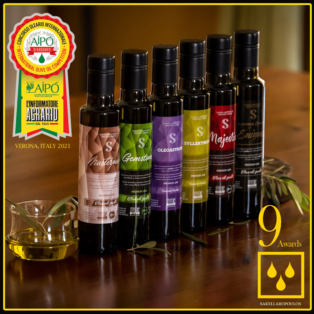 In particular, the 9 major awards in the organic gourmet olive oils of Sakellaropoulos Organic Farms in Verona for 2021 are:
