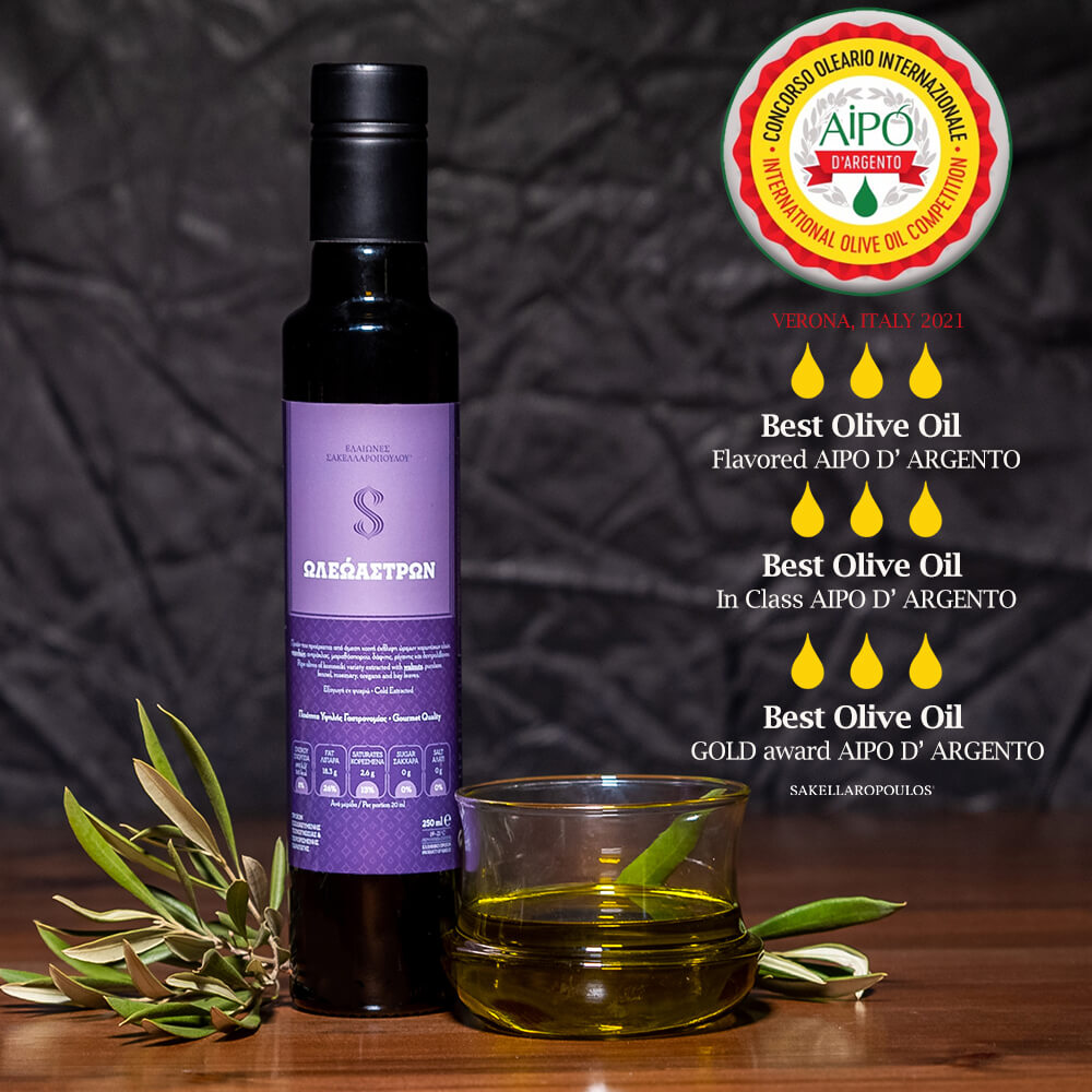 All these extremely high awards in Verona, Italy, are a special honor for Sakellaropoulos Organic Farms, with the top highlight being the olive oil Masterpiece Gourmet Evoo as the winner and Best Spicy Flavored Evoo of the competition for 2021.