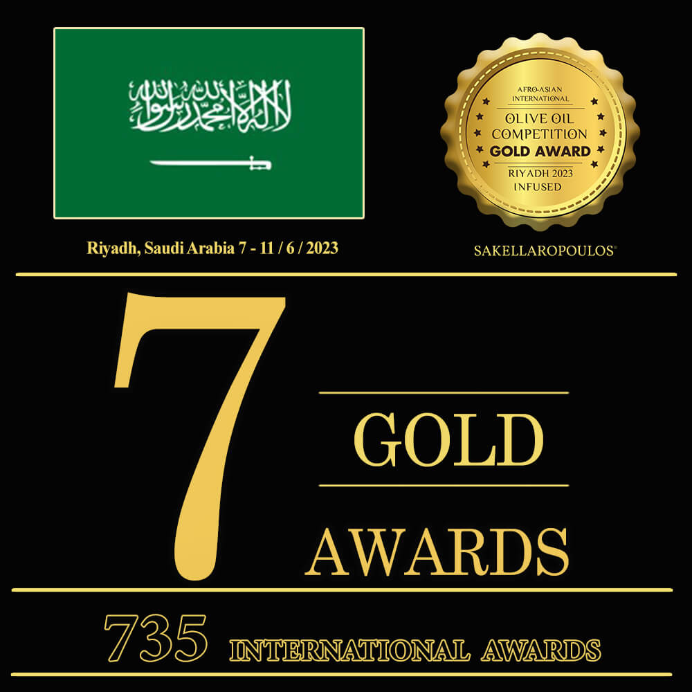 These seven (7) major international awards at the AFRO - ASIAN IOOC 2023 in Saudi Arabia complete the unique number of 735 international awards for Sakellaropoulos Organic Farms, a world record number for a Greek olive producer exclusively of their own olive products (Single Estate – Terroir).