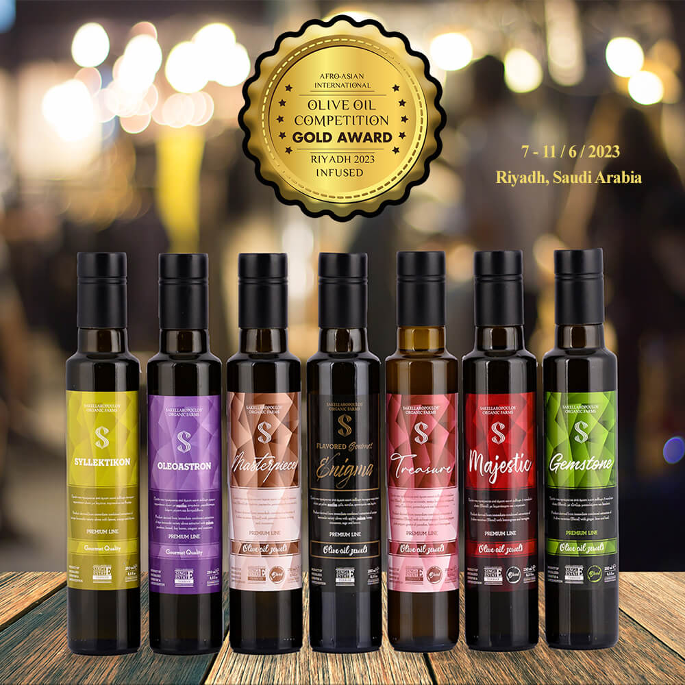 In particular, the 7 major awards for the gourmet olive oils by Sakellaropoulos Organic Farms in Riyadh, Saudi Arabia for 2023 are: