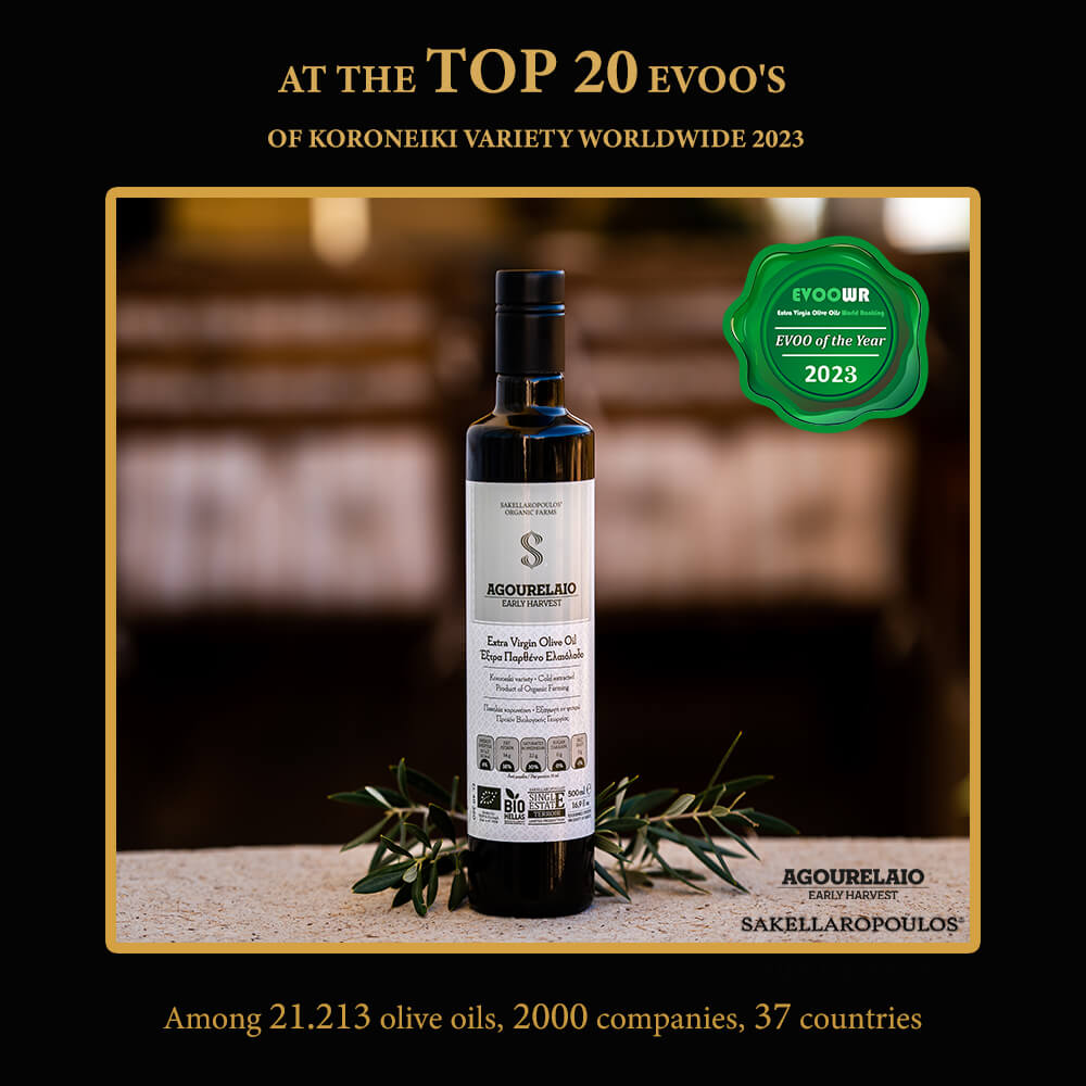 At the same time in the world ranking of olive oils EVOOWR 2023, Sakellaropoulos Organic Farms were honored as a producer of extra virgin olive oils, with very high distinctions. In detail: