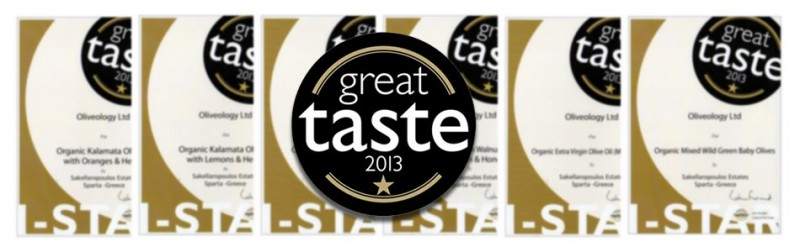 At the Great Taste Awards, for 2013, we took part in the following categories: category OLIVES and category EVO FLAVOURED, where we were honored with 6 (six) gold stars for six of our products.