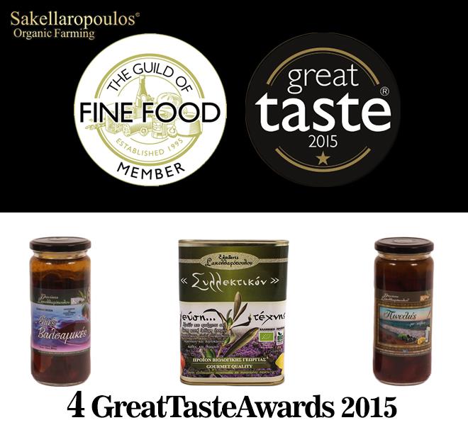 These 4 great distinctions at this year’s GREAT TASTE AWARDS constitutes 16 international awards for the year 2015, the 37th international award and the 16th Great Taste Award for Sakellaropoulos Estates during the last 4 years consecutively.