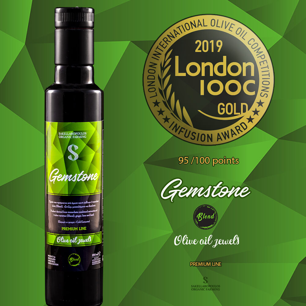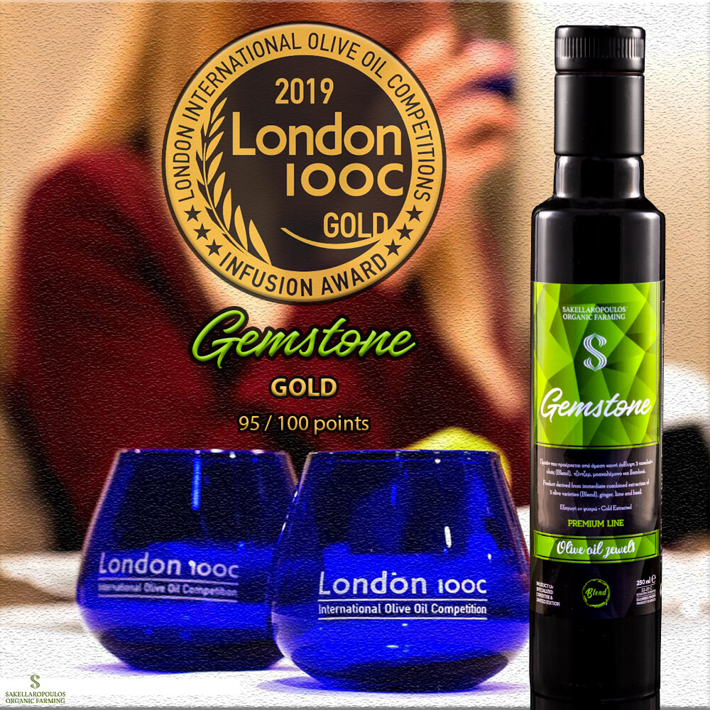 Οι βιολογικοί ελαιώνες Σακελλαρόπουλου, συγκεντρώνοντας πολύ υψηλή βαθμολογία βραβεύτηκαν για το νέο αρωματικό ελαιόλαδο Gemstone Flavored Blend Evoo με το ΧΡΥΣΟ βραβείο - GOLD medal, που αποτελεί μεγάλη τιμή και επιβράβευση της προσπάθειας μας επί 27 χρόνια για την επίτευξη ανώτερης ποιότητας.