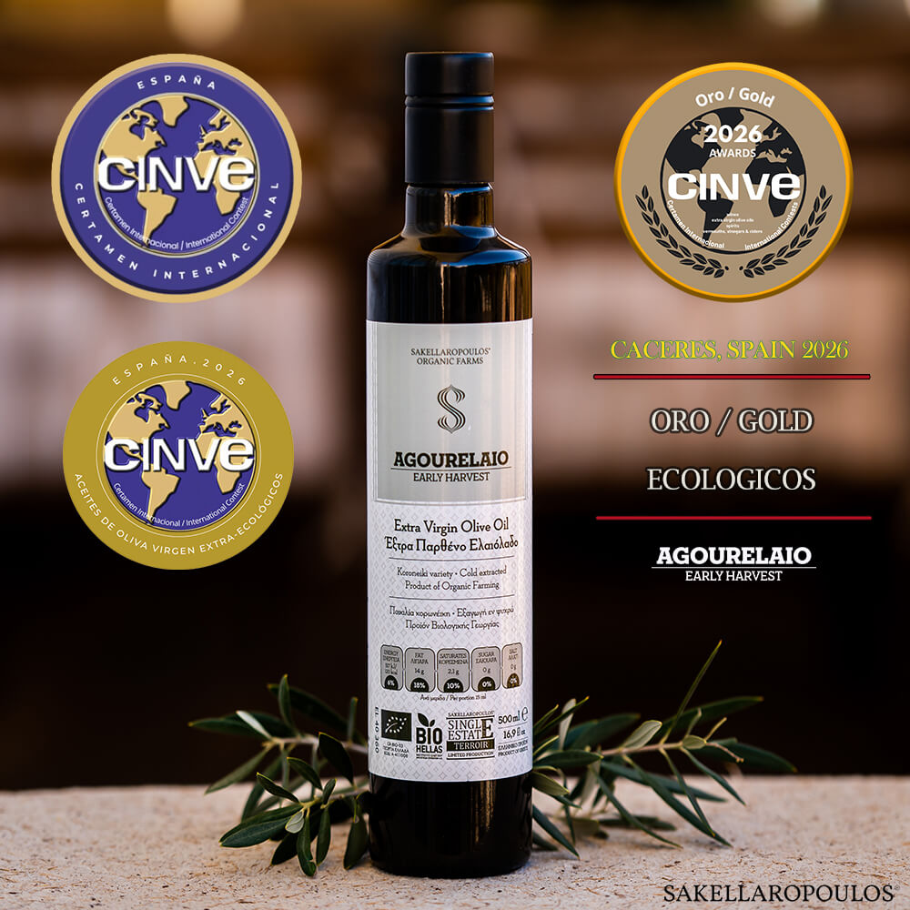 Ειδικότερα, τα βιολογικά και gourmet ελαιόλαδα των ελαιώνων Σακελλαρόπουλου που βραβεύθηκαν στον CINVE IOOC για το 2026 είναι: