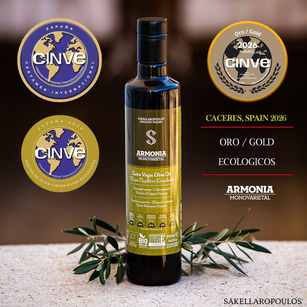 Οι βιολογικοί ελαιώνες Σακελλαρόπουλου, συμμετείχαν στον διεθνή διαγωνισμό της Ισπανίας, CINVE IOOC 2026 με τα εξειδικευμένα βιολογικά και gourmet ελαιόλαδα τους και τιμήθηκαν με τον αριθμό των δέκα (10) βραβείων, πετυχαίνοντας βαθμολογίες από 86 έως και 95 %.
