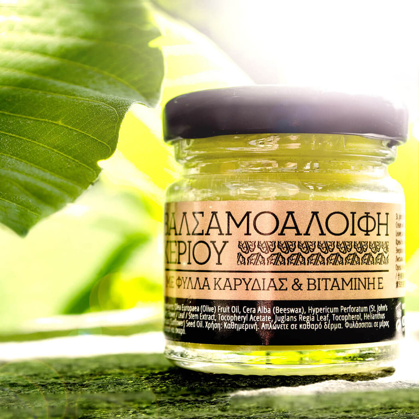 The cold extracted, organic extra virgin olive oil contained in the St. John’s wort oil wax cream with walnut leaves and vitamin E, comes from Sakellaropoulos organic farms and has been a powerful cosmetic ingredient since ancient times.
